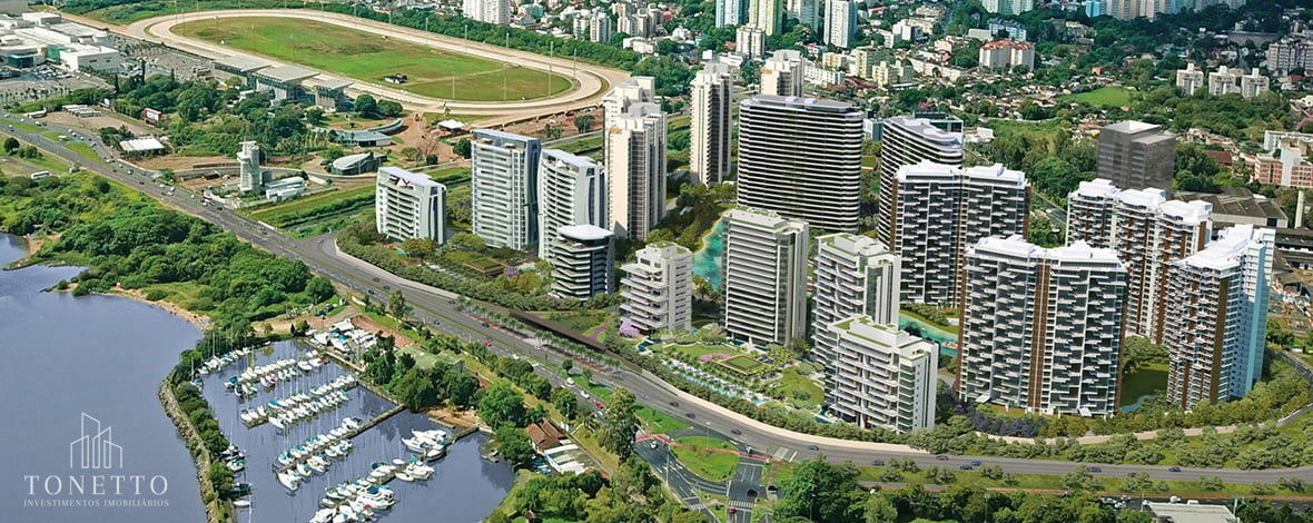 Neste primeiro condomínio, o Lake Victoria, que está em fase de pré-lançamento, serão 4 torres e todos os apartamentos terão vista para o Guaíba.